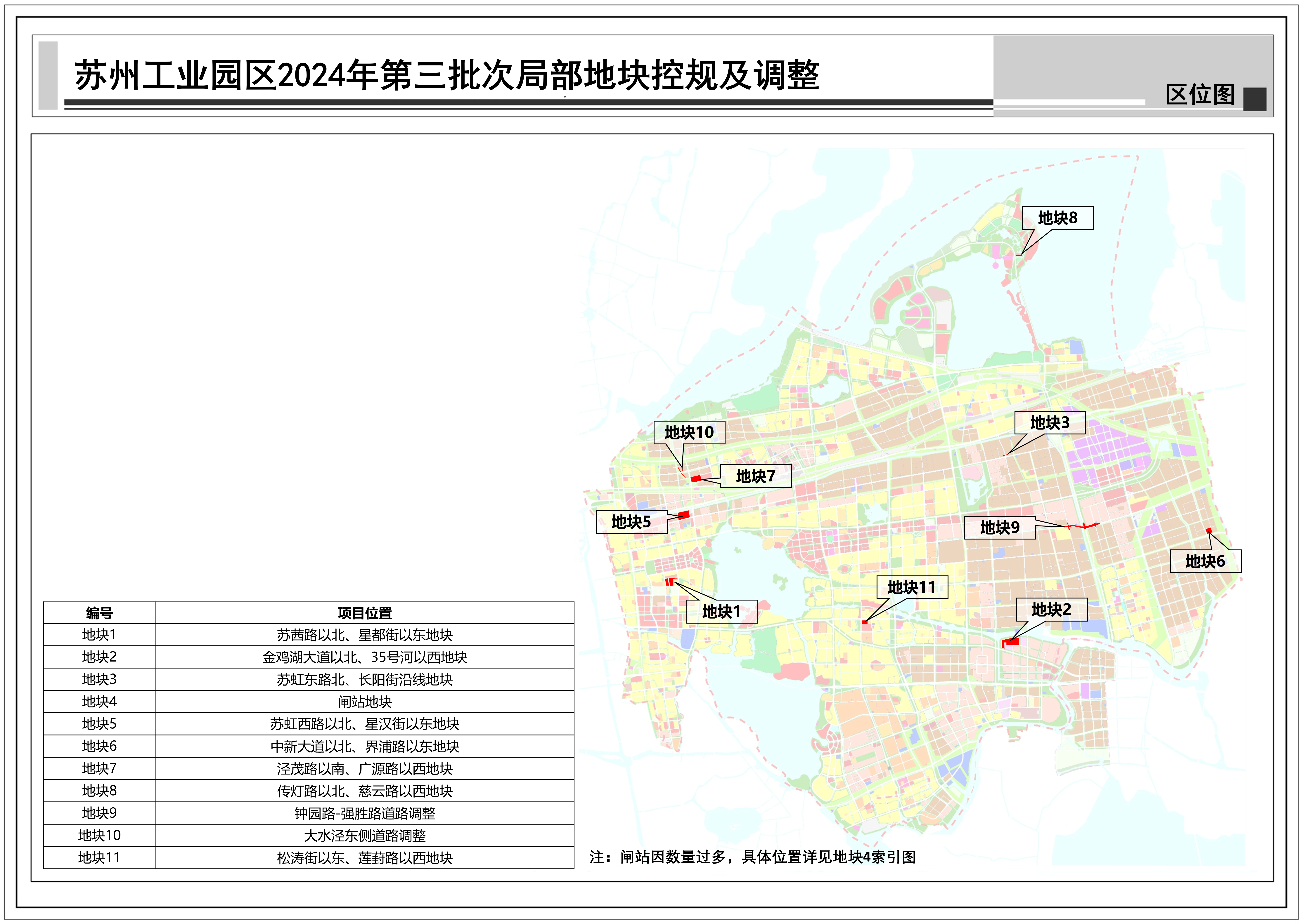 蘇州工業(yè)園區(qū)2024年第三批次局部地塊控規(guī)及調(diào)整:共包括11個(gè)地塊,總用地面積約0.52平方公里,詳見(jiàn)附圖區(qū)位圖。