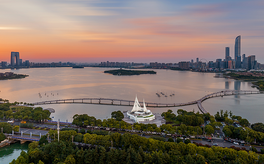 在開發(fā)建設(shè)30周年之際,園區(qū)積極以新載體撬動經(jīng)濟“新引擎”。金雞湖驛站改造是環(huán)金雞湖區(qū)域綜合提升工程中的重要舉措。其中,金雞驛06館位于望湖角帆船碼頭,緊鄰金水灣棧橋,定位為集水上運動、餐飲和公共服務(wù)為一體的綜合服務(wù)設(shè)施。驛站頂部設(shè)有巨型帆船雕塑,與湖邊停泊的點點帆船,構(gòu)成了時尚美麗的城市風(fēng)景線。