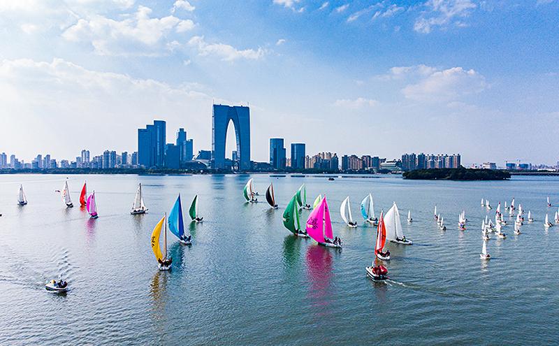 近年來,園區(qū)積極舉辦金雞湖端午龍舟賽、江蘇省青少年帆船聯(lián)賽、金雞湖皮劃艇和槳板挑戰(zhàn)賽、中國家庭帆船賽、水上運動嘉年華暨蘇州市大眾體育聯(lián)賽等多項水上運動賽事,既滿足市民群眾日益增長的健身運動需求,也同步帶動美食娛樂、交通酒店、觀光旅游等多個產(chǎn)業(yè)的消費鏈條,讓體育競賽與園區(qū)城市文化相融,以賽為媒、以體促城,為城市經(jīng)濟發(fā)展注入了持續(xù)動能。