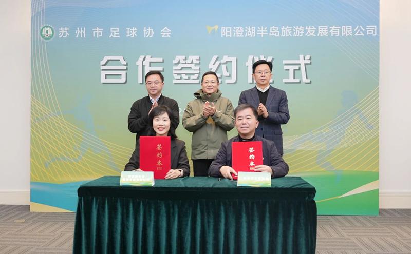 1月22日,蘇州市足球協(xié)會與蘇州陽澄湖半島旅游發(fā)展有限公司合作簽約儀式在蘇州陽澄湖半島旅游度假區(qū)舉行,蘇州市足協(xié)活動中心順利落戶半島。蘇州市體育局、蘇州工業(yè)園區(qū)宣傳和統(tǒng)戰(zhàn)部、度假區(qū)黨工委管委會、蘇州市足協(xié)、半島公司等單位和企業(yè)相關(guān)負(fù)責(zé)人參加活動。