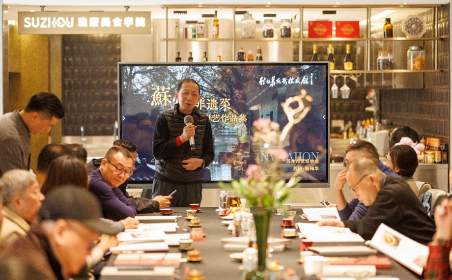 文化是蟹宴的靈魂,而蔣洪則是行走的“美食文化密碼本”。資深飲食文化學者、蘇州江南美食文化基金會顧問、蘇州市烹飪協會飲食文化研究專委會主任、吳越美食推進會創始會長……這些頭銜不僅是多年探索吳地飲食文化的印跡,更是代表了業內對他的認可和尊敬。堆滿他辦公室的泛黃古籍除了是挖掘“江南運河宴”和“吳江十二鮮”等傳統宴席的“尋寶圖”,也早已化為他腦海中的“美食活字典”。